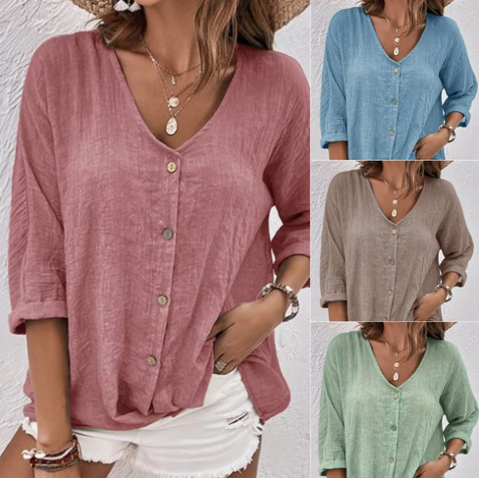 Descubre EasyV™, la camisa informal que redefine el confort. Su cuello en V realza tu figura, mientras su corte holgado te brinda libertad total de movimiento. Diseñada para mujeres auténticas, modernas y seguras de sí mismas que buscan verse bien sin sacrificar la comodidad.